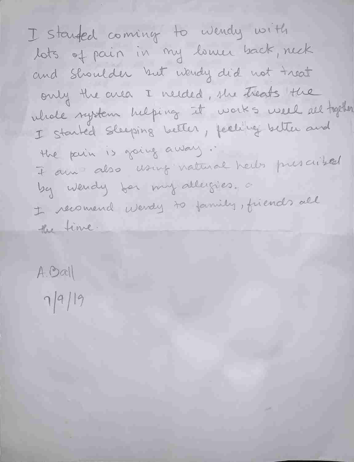 I started coming to Wendy with lots of pain in my lower back, neck, and